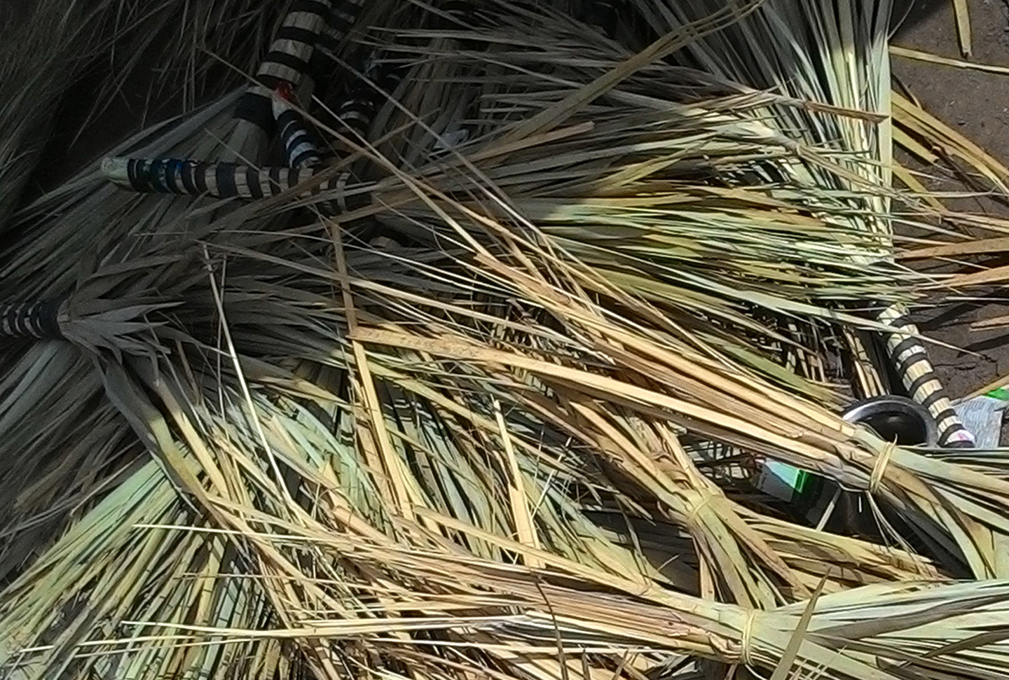 The process of making the broom using date-palm leaves.